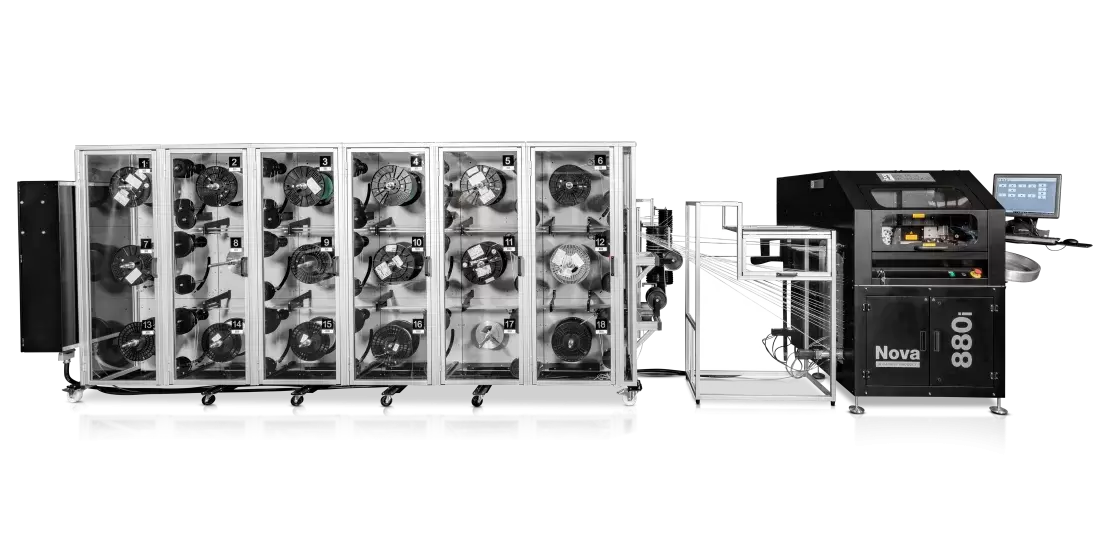 la série Nova 800i est conçue de manière modulaire et peut facilement être mise à niveau sur le terrain pour fournir un marquage plus rapide et/ou des systèmes de manipulation de fils entièrement automatisés capables de traiter jusqu'à 36 fils différents.